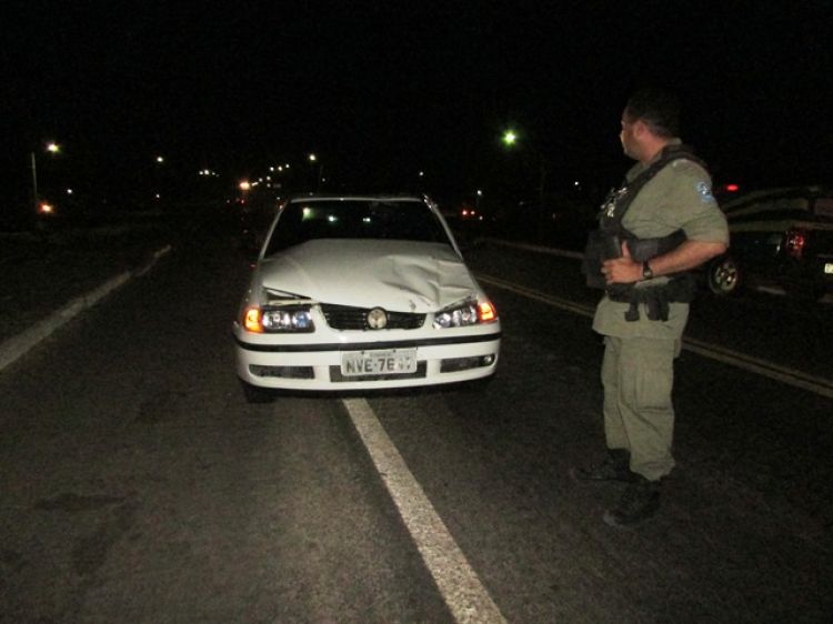 Um carro da marca Gol placa MVE-7647/THE, de cor bronca, colidiu com um homem embriagado em um cavalo na noite de sábado (12), na BR-343, próximo a um posto de combustíveis.