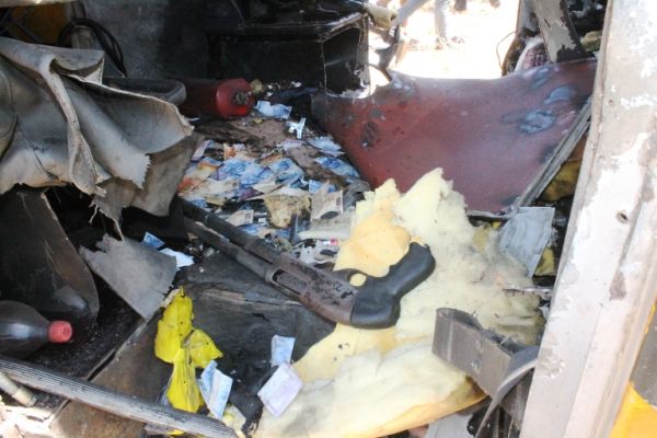 Segundo o inspetor da Polícia Rodoviária Federal, Fabricio Loiola, o “carro estava preparado para confronto com a polícia”. O policial não informou, mas os dois buracos que existem na chapa de aço colocada no vidro traseiro do veículo pode ter sido por onde os bandidos começaram a fuzilar o carro forte. Logo após o assalto os elementos incendiaram o veículo na estrada que dá acesso a comunidade Flores, zona rural de Campo Maior.