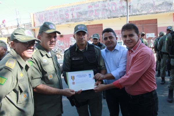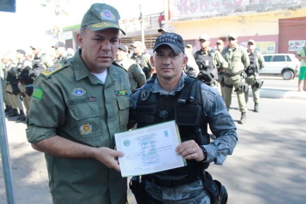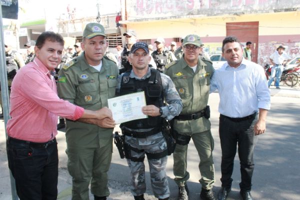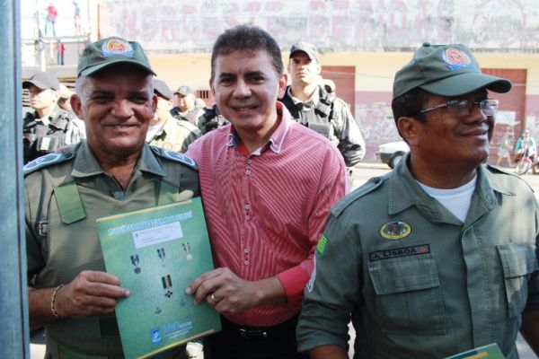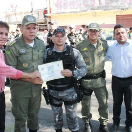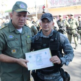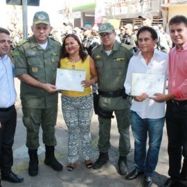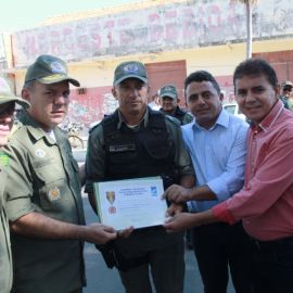 A solenidade ocorreu na Praça Luís Miranda e na oportunidade foram entregues medalhas de reconhecimento pelos serviços a Policiais Militares com 10, 20 e até 30 anos na corporação. Foram entregues também duas medalhas de “Amigo da Polícia” para dois empresários, Antônio Pereira e Edilson Araújo e um diploma de honra ao mérito ao Cabo Bosco por ter sido o PM que mais apreendeu armas no ano de 2016, 11 no total.