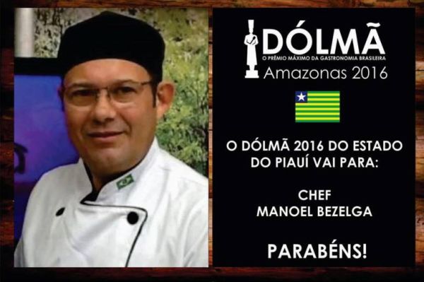 O Chef de Cozinha Manoel Bezelga conquistou no último final de semana o Prêmio Nacional Dólmã que nesse ano aconteceu em Manaus (AM). Alem do reconhecimento como melhor chef de cozinha do Piauí, Bezelga recebeu uma estatueta e será o embaixador da gastronomia em 2017 com a obrigação de fazer todo processo de indicação de restaurantes e de chefs locais para a próxima edição do prêmio.