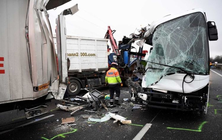 As primeiras imagens do local do acidente permitiam ver um ônibus seriamente danificado e o compartimento de carga do caminhão com danos na parte traseira, segundo a Efe.