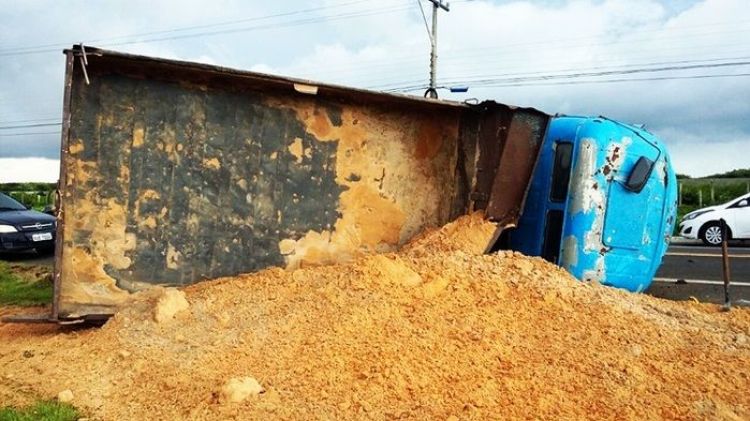 O caminhão, que transportava barro, seguia no sentido Luís Correia/Parnaíba quando apresentou falha, provavelmente o pino da barra de direção soltou.