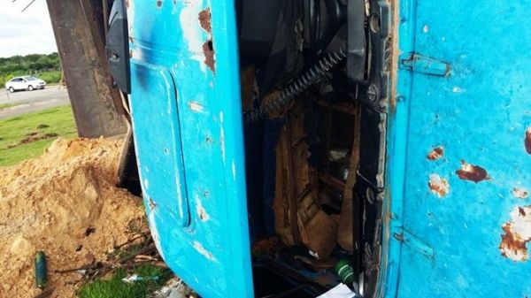 O veículo desgovernado subiu o meio-fio, arrancou uma placa de sinalização, estourou um pneu dianteiro e tombou. Segundo o lavrador Jacinto Silva, que viu a cena, disse que o condutor sofreu ferimento no braço e bateu cabeça, mas estava consciente e foi levado para o Hospital Estadual Dirceu Arcoverde (HEDA) pelo Serviço de Atendimento Móvel de Urgência (SAMU).