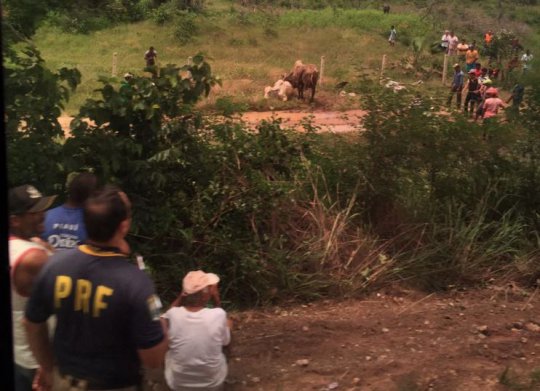 A PRF informou que no momento da chegada dos Agentes no local do acidente, haviam vários caminhões e pessoas. O veículo transportava carga viva, aproximadamente 32 bovinos, sendo que o acidente provocou a morte de alguns animais e lesionou outros. Não foram localizados documentos do condutor, dos veículos e nem da carga. A cabine do caminhão ficou parcialmente submersa em água, devido à proximidade com o Rio Raposo. A carga seguia do Maranhão para o Ceará