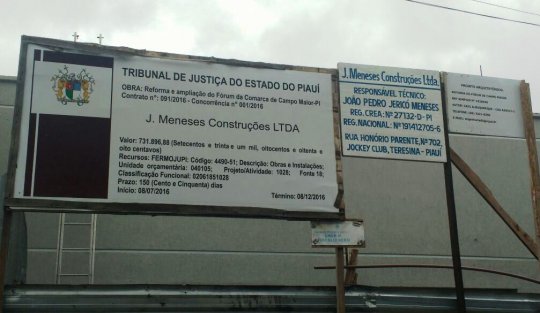 Com três meses de atrazo, a obra de reforma do Fórum da Comarca de Campo Maior entra em fase de conclusão. Com orçamento entorno de R$ 732 mil, o prédio da Justiça ganhou ampliação de cômodos e modernas instalações hidráulica e elétrica. A iniciou em julho do ano passado com prazo de término para dezembro do mesmo ano.
