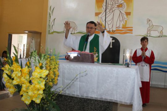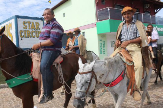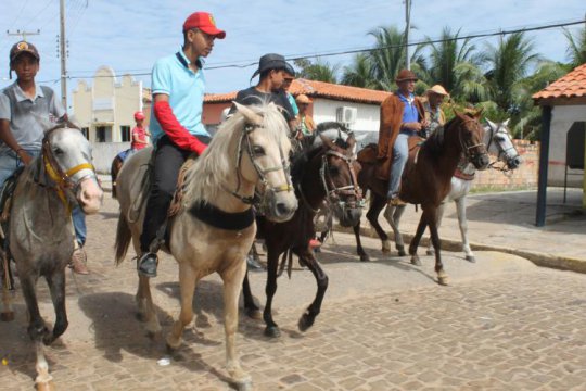 Após o café, vaqueiros e autoridades seguiram em cavalgada rumo à igreja matriz da cidade, onde o Padre Alan Kardec os aguardava para iniciar a missa.