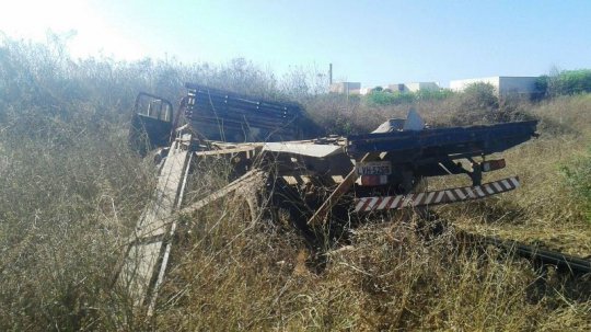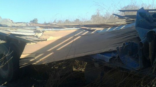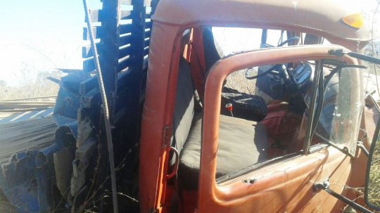 Numa das fotos é nítida a marca por onde um dos pneus do caminhão passou por cima do veículo menor. Desgovernado, ele só parou após descer o aterro. Os motoristas tiveram apenas escoriações leves.