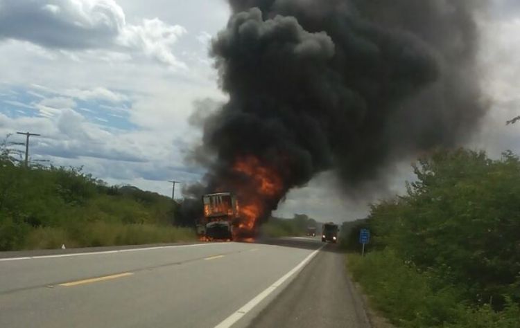 Caminhão transportando produtos inflamável incendeia na BR-407 no interior do Piauí