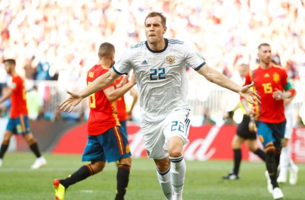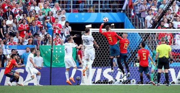 Logo no começo da primeira etapa, o zagueiro Ignashevich marcava Sérgio Ramos num cruzamento para a área e acabou marcando contra a sua própria meta. Ainda no primeiro tempo, Piqué acabou vacilando e batendo a mão na bola dentro da área. A arbitragem assinalou o pênalti e Dzyuba empatou a partida, resultado que persistiu até o final dos 120 minutos.