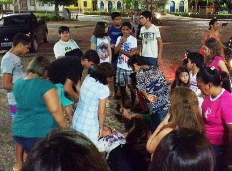 Uma jovem identificada apenas por Letícia caiu da garupa de uma moto na noite desta terça-feira (06/10) na Praça Bona Primo, em Campo Maior. A vítima sofreu forte pancada na região da cabeça depois do tio chamado Antônio empinar o pneu do veículo e causar o acidente.