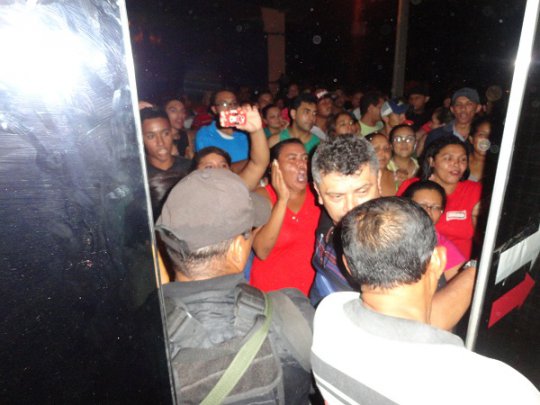Cordeiro negociando com manifestantes que clamavam por justiça na Delegacia de Campo Maior (Foto: Otávio Neto)