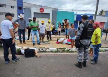 Com o impacto, o casal foi arremessado no canteiro central da avenida.