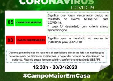 De acordo com o boletim epidemiológico subiu para 3 o número de casos confirmados e 5 casos estão descartados.