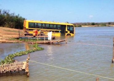 Condutor faz 'manobra arriscada' e ônibus escolar cai em rio no Piauí