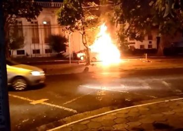 Carro pega fogo em frente ao prédio da Prefeitura de Teresina