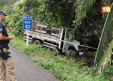 O caminhão trafegava pela estrada federal no momento que foi interceptado por dois assaltantes em uma moto