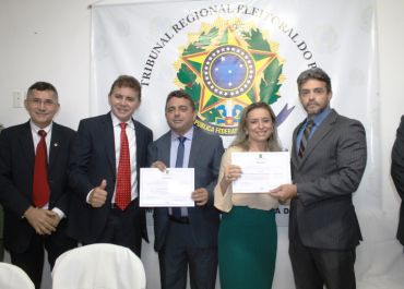 A solenidade presidida pelo Juiz Eleitoral Leandro Emídio diplomou ainda a vice-prefeita Liege Cavalcante, 13 vereadores e sete suplentes