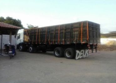 Os policiais interceptaram dois caminhões carregado de madeira que estavam estacionados no posto de combustível Jenipapo, na BR 343.