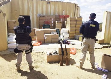 PRF apreende armamento e carga de cigarros em casebre às margens da BR-316