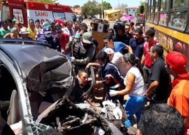 A mochila caiu, ela tentou pegar, mas o motorista deu a ré