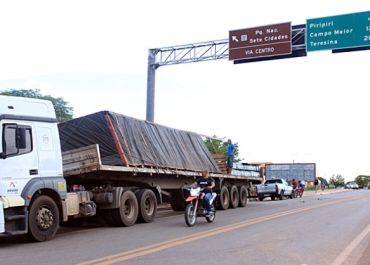 O caminhão seguia de Caxias-MA, com destino ao litoral do Piauí, quando a carga acabou derramando, em parte, numa curca de rotatória da BR-343
