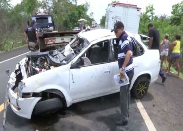 As vítimas fatais eram marido e mulher. Uma senhora e uma criança também viajavam no carro.