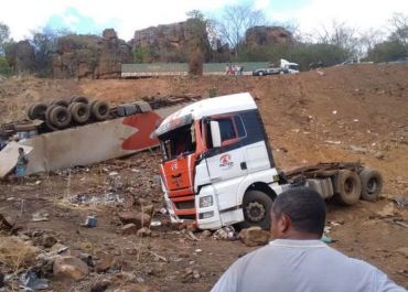 O caminhoneiro dirigia uma caminhão frigorífico perdeu o controle do carro no trecho conhecido como ladeira do Povoado Fátima do Piauí e tombou.