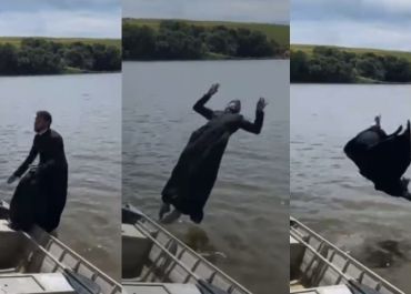 Em retiro de carnaval padre surpreende ao de batina dá salto mortal em lago