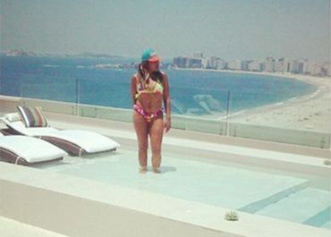 A cantora que estava de biquíni quase caiu e gerou confusão entre seguranças e fotógrafos na saída do restaurante na noite do domingo, 27.
