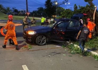 Veículo ficou preso em uma área de mata, na avenida NS-02, perto da rotatória do relógio.