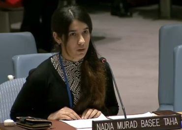 Nadia Murad Basee Taha foi raptada por extremistas em 2014. Ela dedicou prêmio a mulheres perseguidas e vítimas do tráfico humano.