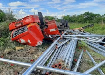 O motorista teria perdido o controle do caminhão e decido a ribanceira em alta velocidade, causando grande estrago em todo o veículo