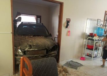Segundo a Polícia Militar, o motorista do carro perdeu controle do veículo em uma curva e atingiu o portão, derrubou uma parede e invadiu a sala da casa. A porta da sala de jantar também foi destruída. Ninguém fico