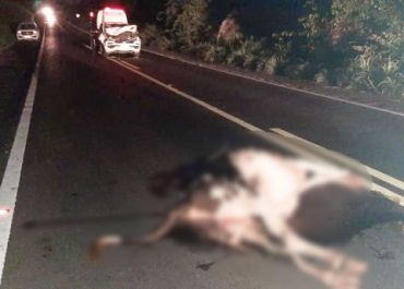 Segundo o motorista da ambulância, o animal foi carregado por pessoas que passavam pelo local do acidente.